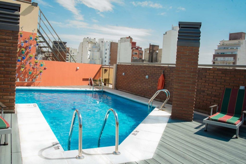 En la terraza se encuentra uno de los espacios más destacados del hotel. La piscina descubierta (NO climatizada) y solarium permanecen abiertos durante todo el año, donde nuestros huéspedes podrán relajarse y disfrutar la vista de la ciudad.